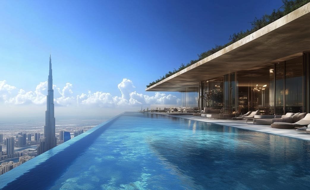 Rooftop and sky-level infinity pools with panoramic Burj Khalifa & sea views